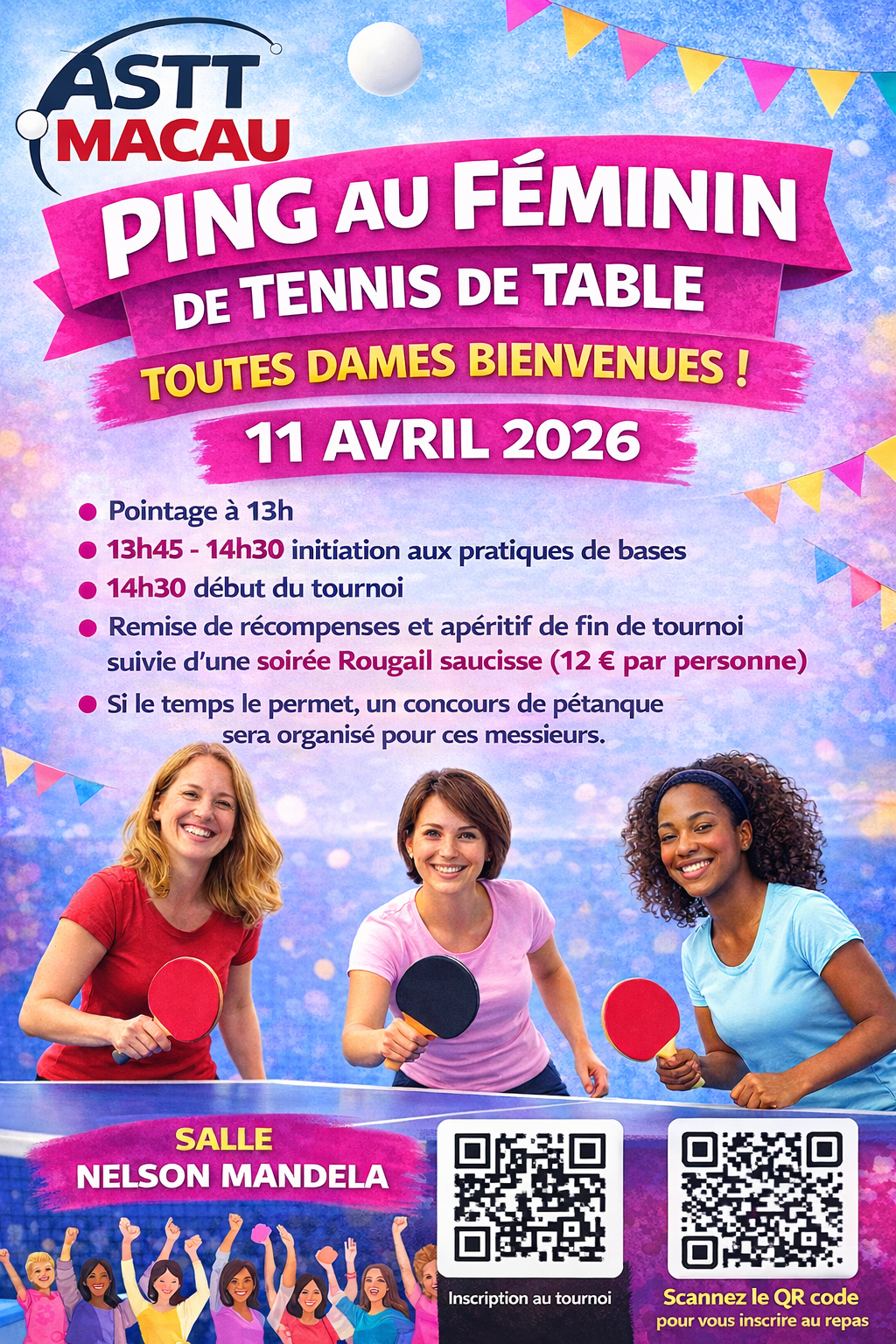 Vous trouverez ci-joint l'affiche de notre journée "Ping au Féminin" organisée à MACAU le 11 Avril 2026.